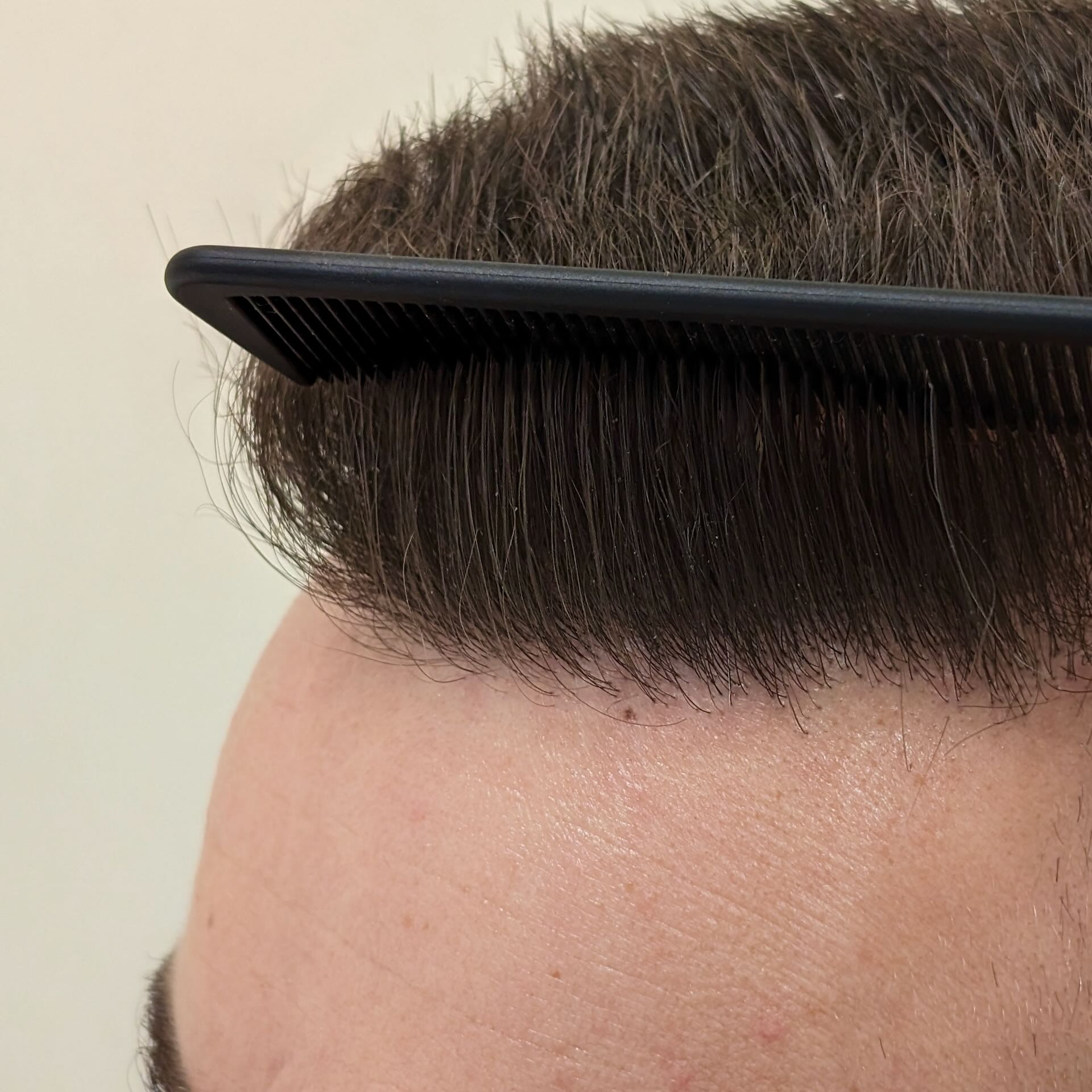 Ten pacjent zgłosił się do nas celem zagęszczenia linii włosów po wcześniejszym przeszczepie wykonanym w innej klinice. Przeszczepiliśmy 1520 mieszków metodą FUE/DHI, koncentrując się na uzyskaniu bardziej naturalnego i płynnego efektu w obrębie linii włosów. Pomimo bardzo grubej struktury włosów udało się osiągnąć rezultat odpowiadający oczekiwaniom pacjenta.